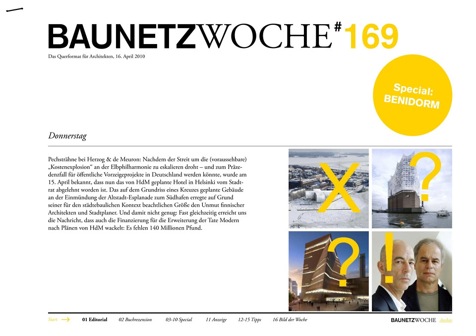 "De Meuron: Wir sind als Architekten sehr sichtbar in der Öffentlichkeit und tragen viel Verantwortung für die von uns gestaltete Umwelt. Diese Verantwortung können wir vor allem auf unserem Kerngebiet übernehmen, der stadträumlichen und architektonischen Ausformulierung eines Raumprogramms. Verantwortung für Kosten und Termine im streng rechtlichen Sinne können wir aber nicht übernehmen, weil dies ein ganz anderer Kompetenzbereich ist." NOCH FRAGEN?