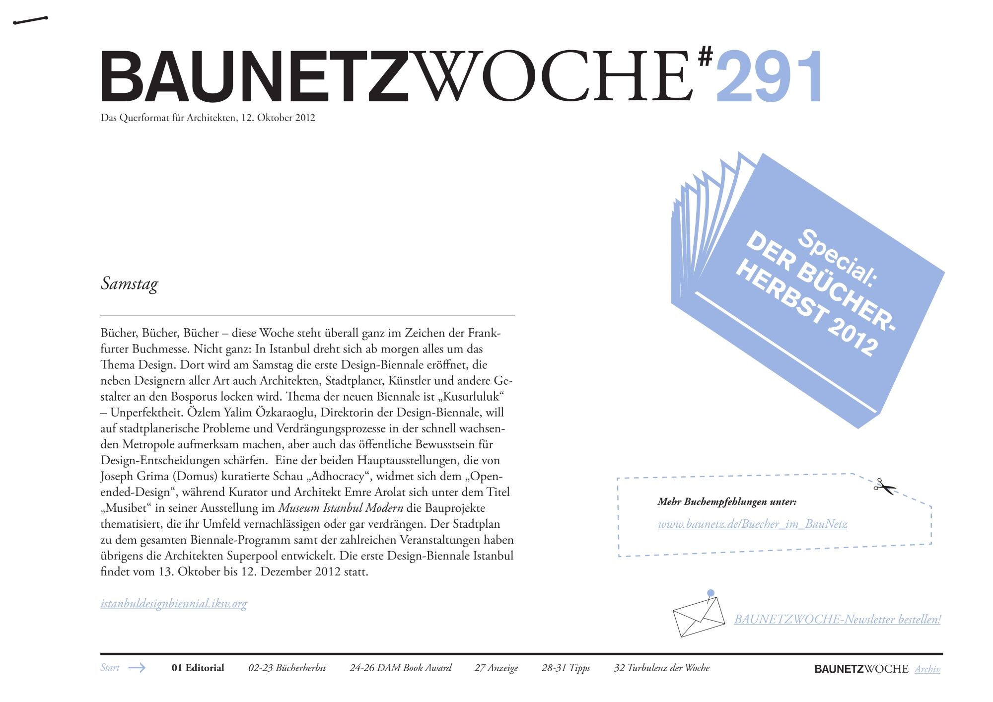 „Für jedes Buch das man kauft, sollte man gleich die Zeit zum Lesen mitkaufen“, hat Karl Lagerfeld mal gesagt. Recht hat er. Pünktlich zur Frankfurter Buchmesse gibt die BauNetz-Redaktion wieder wärmste Empfehlungen für den Bücherherbst 2012.