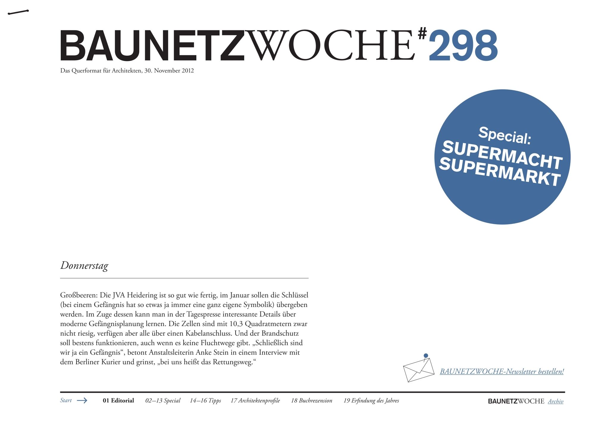Streck-, Sicht- und Bückzone: Nicht nur die Regale im Supermarkt werden nach einem bestimmten Prinzip aufgebaut, auch das Gebäude samt Raumkonzept und Hülle folgt speziellen Planungsanforderungen, die trotz seitendicker Manuals genug Raum für Kreativität lassen. Aber die Zeiten zweckmäßiger Hallentragwerke mit kalter Neonbeleuchtung sind gezählt. Ob in Gold verpackt, mit einem besonderen Dach oder gleich als Paradies – Supermärkte sind für Architekten eine anspruchsvolle Herausforderung geworden.