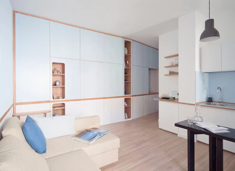 Im Moment verbringen wir alle viel Zeit zu Hause, und das wird wohl auch noch eine Weile so bleiben. Die Wohnung muss jetzt – mehr denn je – verschiedene Funktionen gleichzeitig erfüllen: Sie soll angenehmer Aufenthaltsort, Homeoffice, Spielplatz, Schule, Bibliothek, Kochstudio, Kino und Fitnessraum in einem sein. Wohl dem, der ein großes Haus mit Garten hat. Aber auch in kleinen Apartments kann mit der richtigen Raumorganisation einiges an Platz und Komfort gewonnen werden. Wir haben zwölf Beispiele aus dem Archiv versammelt, die zeigen, wie sich die eigenen vier Wände vergrößern und optimieren lassen.