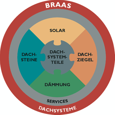 Die Braas GmbH ist Deutschlands führender Anbieter von kompletten Dachsystemen. Unter der bekannten Marke Braas bietet das Unternehmen seinen Partnern und Kunden alles rund um das geneigte Dach, und das in bester Qualität: von Dachsteinen und Dachziegeln über Dachsystemteile, Solarsysteme und Dämmung bis zu einem umfassenden Serviceangebot. Alle Systemkomponenten sind anwendungstechnisch ausgereift und erfüllen höchste Ansprüche an den Komfort und die Sicherheit eines Daches. Materialien, Farben und Funktionen ergänzen sich dabei in hervorragender Weise. Deutschlandweit arbeiten 1.000 Mitarbeiterinnen und Mitarbeiter an 17 Standorten daran, dass aus einem Dach ein perfektes Braas Dach wird.