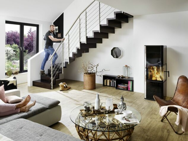 Linea ist eine Treppe, die auf das Wesentliche reduziert ist. „Treppen mit einer so klaren Formensprache bereichern den Wohnraum wie eine Skulptur“, sagt Heinz Lammers, Leiter der technischen Entwicklung der Treppenmeister-Partnergemeinschaft. Stufen und Setzstufen sind bei dem technisch und statisch ausgeklügelten Konstrukt Z-förmig aneinandergefügt und fest in der Wand verankert. Zudem punktet die Faltwerktreppe Linea aufgrund ihrer flexiblen Einsatzmöglichkeiten. Sie passt an beinahe jede Wand und lässt bei der Gestaltung des Geländers freie Wahl: Relingvarianten lassen sich genauso anbringen wie Glasgeländer oder dekorative Schichtstoffplatten. Die Treppenstufen selbst werden aus Harthölzern wie Buche, Eiche, Esche Ahorn oder Birke gefertigt. Sie sind lackiert oder geölt erhältlich.