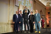 Wirklich glücklich sieht Archie Moore nicht aus, wie er da neben Pietrangelo Buttafuoco steht, dem kontroversen neuen Präsidenten der Biennale. Moore erhielt den Goldenen Löwen für den besten Beitrag. Ebenfalls im Bild: Italiens Kulturminister Gennaro Sangiuliano, Kuratorin Ellie Buttrose und der diesjährige Biennale-Direktor Adriano Pedrosa.