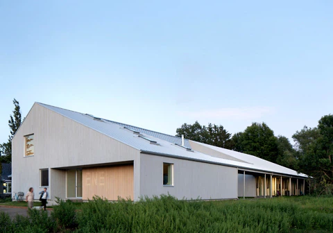 Wir haben uns achtzehn scheunenartige Gebäude angesehen und dabei festgestellt, dass der Grundtypus noch fast jede Bauaufgabe um eine interessante Dimension ergänzt. Das gilt für klassische Transformationsprojekte zu Wohnzwecken ebenso wie für die zahlreichen Neubauten, die auch mal Kindergärten, Pools oder Kirchen beherbergen können.