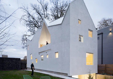 Wie in Madrid, wo Elvira Arquitectos ein vier Meter breites und 18 Meter langes Einfamilienhaus entwarfen, sind es in den meisten Fällen die einzuhaltenden Abstandsflächen sowie die Grundstücksform, die die schmale Architektur geradezu heraufbeschwören. Doch nicht immer entscheiden Bebauungsplan und rechtliche Vorgaben über Form und Kubatur der schmalen Gebäude. So zum Beispiel in Santiago de Chile, wo die Thiermann Cruz das Grundstück in drei längliche Streifen teilten und das Gebäude selbst mittig positionierten, sodass sich auf den seitlichen Streifen Platz für unterschiedliche Höfe ergibt. Genauso handhabte es Jennifer Bonner in Atlanta, wo ein langgezogenes Holzhaus Platz für einen Garten macht. (dsm)