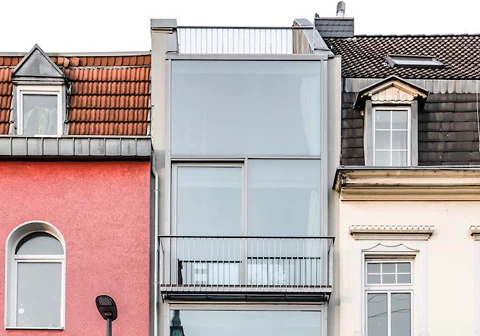 Aber auch in Deutschland kennt man sich aufgrund der dicht bebauten historischen Ortskerne mit schmal bemessenen Grundstücken ganz gut aus. Das sechsgeschossige Wohnhaus von Wolfgang Zeh in Köln beispielsweise ist lediglich drei Meter breit. In Esslingen planten Finckh Architekten zwar nicht im historischen Stadtkern, das Grundstück ließ jedoch trotzdem nur eine viergeschossige Bebauung mit 4,70 Metern Breite und 14 Metern Länge zu.