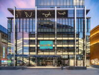 Die Gestaltung des Saals, der unterschiedlichste Nutzungen und Bestuhlungsvarianten eröffnet, folgt den Ideen der Intendantin Nica Burns. Gemäß ihrer Schilderungen einer abendlichen Vorstellung im antiken Theater von Epidauros, errichtet im vierten vorchristlichen Jahrhundert, korrespondiert die Farbigkeit der hölzernen Brüstungen und der blauen Sitzbespannung mit einem artifiziellen Sternenhimmel, der den Saal überwölbt. Die Überdachung, die die Aufführungsstätte mit dem sehr gegenwärtigen Namen @sohoplace vom griechischen Vorbild unterscheidet, schützt das Publikum vor dem englischen Regen. Und die vollständige akustische Trennung als Haus im Haus soll die Zuschauer*innen vor Lärm und Vibrationen bewahren, die aus dem unterirdischen Bahnbetrieb resultieren. (ree)