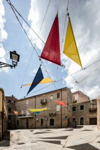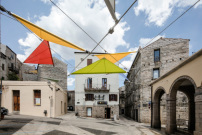 Durch die Motorisierung hat die farbige Intervention zwei Konfigurationen: Einerseits flattern die geöffneten Segel im Wind und spenden vereinzelt Schatten auf dem Platz. Andererseits sind sie in geschlossenem Zustand als farbige Stifte erkennbar – laut den Architekten eine Referenz an Faber-Castell Buntstifte, für die de André eine Leidenschaft hatte. Das begründet auch den Namen des Platzes, der zunächst nicht gerade italienisch klingt: Piazza Faber. (df)