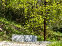 In A Subidá finden sich die Hinterlassenschaften einer romanisierten keltischen Hügelfestung hoch über der Stadt Marín. Die museale Intervention erstreckt sich über ein drei Hektar großes Gelände. Von einem neu angelegten Parkplatz südöstlich der Fundstelle können Besucher*innen den Hang auf einem sich windenden Weg erklimmen. Markierungen im Boden zeigen die auf dem Weg zurückgelegten Höhenmeter an. Wie auch in Alobre nutzten AGi architects den Weg zur eigentlichen Fundstelle, um in regelmäßigen Abständen Informationstafeln aufzustellen. Oben angekommen lassen sich die Festungsüberreste von einer einfachen Erdplattform aus begutachten.
