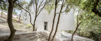 Entworfen und gebaut wurde das Atelier im Wald von dem Büro Garcés De Seta Bonet aus Barcelona. Der helle Betonmonolith ist eine Höhle, die sich nur an wenigen ausgewählten Stellen zur Umgebung öffnet. „Der Neubau wurde auf Wunsch des Bauherrn nur für eine einzige Tätigkeit entwickelt“, erläutern die Architekten, „für ein introspektives, einsames Erlebnis: die Kunst.“ Diese Anforderung führte zu einer einheitlichen, klaren und kompakten Architektur, die sich von der Außenwelt abschirmt, gleichzeitig aber eine vertraute und unaufdringliche Wirkung hat – so die Architekten.