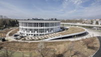 Mit dem fertiggestellten Anbau wird die Universitätsbibliothek zum „Learning Center“ mit Veranstaltungsbereich, Cafeteria und Experimentarium. Die komplett erhaltene Bestandsfassade wird durch eine Lichtfuge im Neubau und einen Umgang im Inneren inszeniert. Das neue Plateau nimmt die Kreisform der Rotunde auf. Die konkave Krümmung markiert den Haupteingang und bildet einen Vorplatz. Das geschwungene weiße Band des Daches tritt mit dem benachbarten Viadukt in Beziehung.