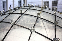 Gregory Quinn, Promotionskandidat am Lehrstuhl für Entwerfen und Tragwerkslehre (KET) der UdK Berlin, erforscht neue Konstruktionsprinzipien für die elastischen Geflechte. Hierbei nutzt er aufblasbare Luftkissen, die eine Steigerung der Baugeschwindigkeit begünstigen: Strecken von bis zu 100 Metern seien in nur wenigen Tagen abdeckbar – was massive Einsparungen von Baukosten bedeuten könnte. Und nicht zuletzt bietet eine derart flexible Struktur vielfältige Einsatzmöglichkeiten, im Eventbereich sowie in der Katastrophenhilfe. Die Ergebnisse der experimentellen Forschung können ab Sonntag, 27. August vier Wochen lang auf dem ANCB-Garten in Berlin besichtigt werden. Das Forschungsobjekt, ein Prototyp von 13 Metern Spannweite, dient dabei als frei zugänglicher Ausstellungspavillon.