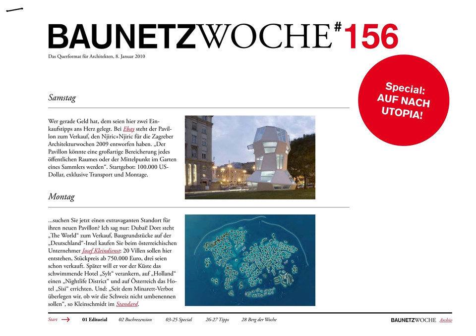 - Special: „Auf nach Utopia!“ Der Klimawandel und die Frage nach Nachhaltigkeit haben unseren Planungshorizont ausgedehnt. Welche Visionen haben Architekten für die Zukunft?