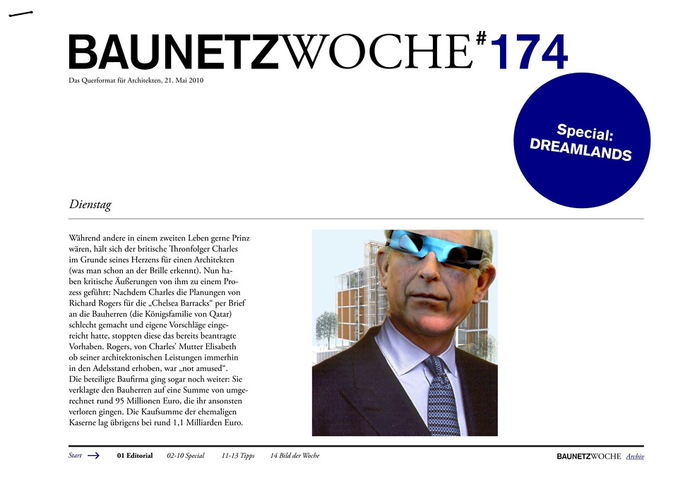 - Special: Die Ausstellung „Dreamlands“ im Pariser Centre Pompidou nähert sich dem Thema der „Festivalisierung der Innenstädte“ von einer ungewohnten Seite: Wie eng miteinander verzahnt sind eigentlich Städtebau und Vergnügungsparks (und zwar nicht nur in „delirious“ New York)?