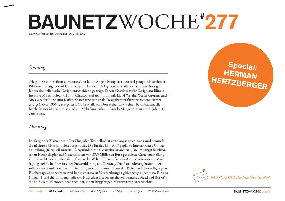 - Angelo Mangiarotti: Erinnerung an einen großen italienischen Designer und Architekten
