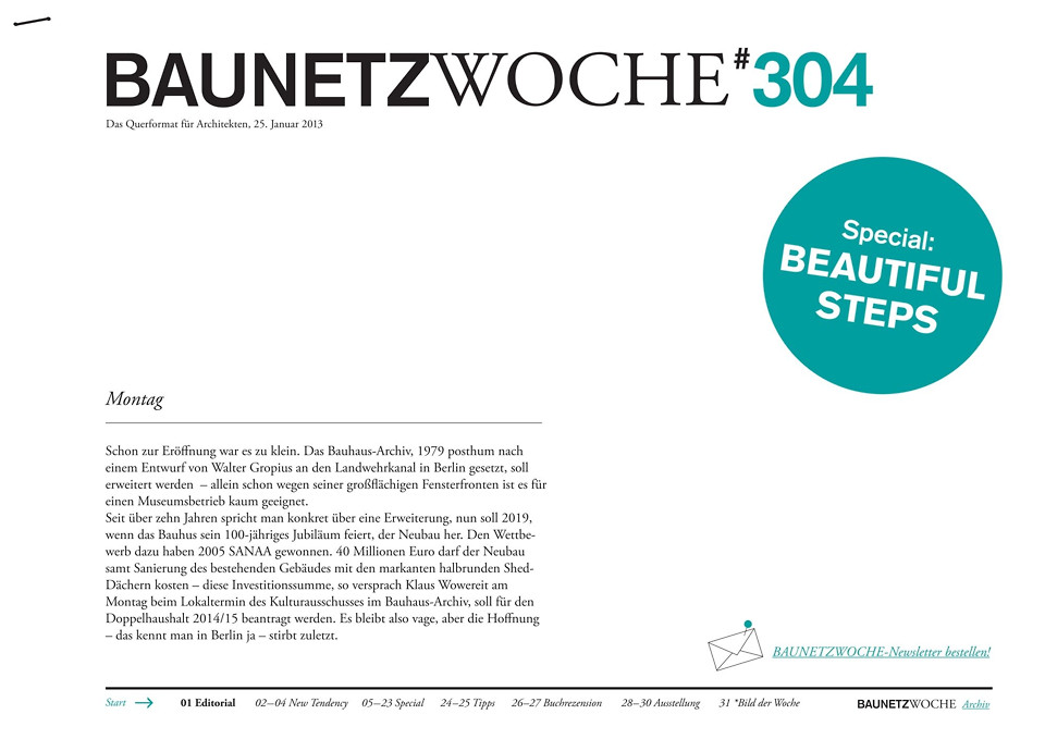 - Beautiful Steps: Zwischen Skulptur und Erschließung – Die Treppe, ein Auf und Ab, wie das Leben: immer eine Frage der Perspektive. Über die Schönheit einer Notwendigkeit
