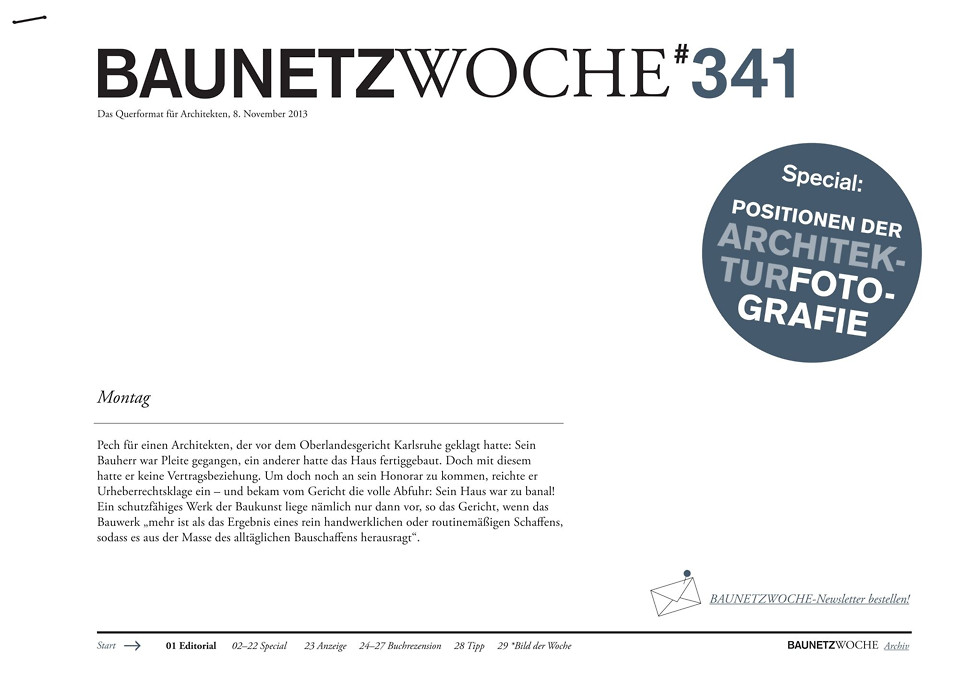 Special: Was vom Projekt bleibt, ist das Foto. Ob Mr. One Shot oder Langzeitdokumentarist – wir zeigen Positionen der Architekturfotografie, darunter Hertha Hurnaus, Brigida González, Wolfram Janzer und Christian Richters