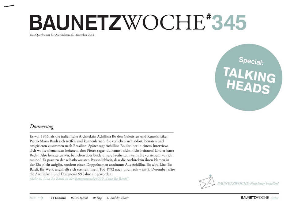 Der Eine leidet an Hypersensibilität, der Andere verschwendet keine Zeit mit überflüssigen Dingen, und die Dritte hatte ein gebrochenes Bein und so ihren Mann kennengelernt. Von wem hier die Rede ist, lesen Sie in den besten 15 Interviews von BauNetz, Designlines und uncube.
