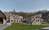 Diese haben das knapp 4.000 Quadratmeter große Forschungsensemble, angelehnt an die kleinteilige, mittelalterliche Dorfstruktur von Waischenfeld, in vier zwei- bis dreigeschossige Häuser aufgeteilt. Unregelmäßig angeordnet gruppieren sich die vier Bauten um ein zentrales eingeschossiges Foyer. Zusätzlich sollen die Fassaden aus Lärchenholz auch in der Materialität die Nähe zur ortstypischen Bautradition aufnehmen. Nur in der Formensprache mit den asymmetrisch verlaufenden Dachfirstlinien und frei angeordneten Fensteröffnungen wollen die Architekten die „ortsfremde“ Nutzung andeuten. „Breite, stark betonende Faschen um die Fenster greifen wiederum ein traditionelles Gestaltungsmittel der Region auf“, erläutern Barkow Leibinger. „So verbinden sich Vertrautes und Neues zu einer in die Umgebung eingebetteten und gleichzeitig für die Forschung authentischen Architektur.“