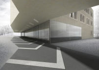 Zentrales Element ist der Arkadenhof zwischen Alt- und Neubau, wobei der Name an einen reich verzierten Stadtpalast denken lässt. Zumindest sprachlich wird hier also an die Vergangenheit der Schule als Bildungsort des preußischen Adels angeknüpft. Aber auch ästhetisch suchen AFF mit ihren rau verputzten Baukörpern die Nähe zur Historie.