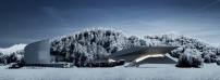 Was ausschaut wie ein Kampfjet, der im Tiefflug auf einen weißen Zylinder-Turm zurast, ist der Entwurf für eine Theatererweiterung im Tiroler Ort Erl von Delugan Meissl Associated Architects. Vor etwa vier Jahren hatte das Wiener Büro den Wettbewerb für den Erweiterungsbau gewonnen (siehe BauNetz-Meldung vom 20. September 2007). Nun beginnen die Bauarbeiten.