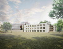 Das evangelische Johannesstift im abgelegenen Spandauer Forst im äußersten Nordwesten des Berliner Stadtgebietes ist im Kern eine axiale Anlage aus dem Jahr 1910 mit dreißig Häusern und einer zentralen Stiftskirche. Hier wurde 1983 das Wichernkrankenhaus als fünfgeschossiger Baukörper für drei Bettenstationen errichtet. Dieses Gebäude genügt heutigen Anforderungen an Pflege und Rehabilitation geriatrischer Patienten nicht mehr.