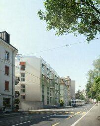 Die Wohnungen mit den Grundrissgrößen von 26 bis 54 Quadratmeter sind nicht für Familien ausgelegt, sondern für die rund 60 Prozent der Single- und Zweipersonenhaushalte in der Schweiz. Dreißig Zentimeter hohe Podeste bieten nicht nur zusätzlichen Stauraum, sondern erleichtern auch den Umzug, denn sie können mit einer Matratze oder Kissen ausgestattet zugleich als Bett oder Sofaecke dienen. „Eine höhere Fluktuation der Bewohnerschaft ist bei diesem Projekt Teil des Konzepts“, so Projektleiter Fabian Lauener. „Es ist insofern in erster Linie ein Bauprojekt für die Nische der Young Urban Professionals. Aber es gibt auch ein erstaunliches Interesse von Menschen ab 60, die ihre Wohnsituation verkleinern oder wieder in die Stadt wollen.“