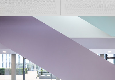 Vom Labor über den Theaterbau bis zum Wohnhaus – unterschiedliche Typologien bekennen sich zur Farbwahl in Pastell. So tauchen ksg architekten die freistehende zentrale Treppe im Landeslabor Berlin-Brandenburg in ein sanftes Flieder, eine Schule bei Paris von Mikou Studio kachelt ihre Flure in Rosé und Beige und LLABB wählten beim Umbau einer Wohnung nach Vorlage einer Schiffskajüte ein nautisch anmutendes Babyblau. (kg)