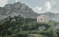 Entstanden ist ein energieautarkes Gebäude, bei dem standortbedingt weder eine Stromversorgung noch ein Kanalanschluss vorhanden sind. Auf dem Dach ist eine Photovoltaikanlage installiert, deren überschüssiger Strom in einer Pufferbatterie gespeichert wird sowie ebenfalls für die Warmwasserbereitung genutzt werden kann. Zudem sichert in Schlechtwetterperioden ein Notstromaggregat die Versorgung. Warmwassererzeugung und Heizung erfolgen durch eine Pellet- und Scheitholzheizung. Wasser bezieht die Hütte durch eine eigene Quellenfassung, die durch eine Regenwassernutzungsanlage mit Regenwasserzisterne ergänzt wird. Die Baukosten werden von den Architekt*innen mit 2,5 Millionen Euro beziffert. (sas)