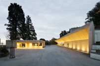 Die baulichen Zeugnisse der Insel Mainau im Bodensee lassen sich bereits aus der Entfernung wahrnehmen: das Barockschloss, die Schlosskirche und der mittelalterliche Comturey-Turm. Da passte das Gastronomiegebäude aus den 1970er Jahren noch nie so recht ins Bild. In die Jahre gekommen, wurde es abgerissen und durch ein Neubau-Ensemble von Hein Architekten ersetzt. Mit seinem Projekt gewann das österreichische Büro in einem geladenen Wettbewerb im Jahr 2011 den ersten Preis. In diesem Frühjahr wurde das langgestreckte Gebäude mit dem markanten auskragenden Holzdach und der vorgelagerte Kassenbau fertiggestellt.