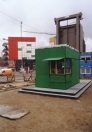 Der rund um die Uhr nutzbare Pavillon besteht aus drei Elementen: einer sogenannten „Tages-, einer Nacht- und einer Projektionsarchitektur“. An einen Stahlrahmen sind auf einer Grundfläche von sieben mal drei Metern zwei Boxen aufgehängt, die je nach Bedarf wie die Kabinen eines Aufzuges auf und ab fahren können. Box Nummer Eins aus grün gestrichenem Holz steht täglich von 9.30 Uhr bis 19.00 Uhr auf dem Boden und öffnet sich wie ein Kiosk nach drei Seiten dem Publikum. Box Nummer Zwei schwebt tagsüber als Gegengewicht auf einer Höhe von 3,60 Metern und wird jeden Abend heruntergelassen (als Zoom-Bild hinterlegt). Sie besteht aus einem mit Quarzsand gefüllten Stahlgehäuse, das mit einem „Virtual Touchscreen“ ausgestattet ist, über den das Infoprogramm nachts als Multimediapräsentation abgerufen werden kann. Das dritte Element ist nicht zum Anfassen: Ein in den Boden der grünen Box eingelassener Videobeamer projiziert Berlin-Filme zum Thema Jahrtausendwechsel von der hochgezogenen Box auf den Boden.