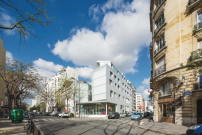 Da passt es, dass die Lösung der kniffeligen Aufgabe mit den Büros LAPS Architecture aus Paris und MAB Arquitectura aus Barcelona ebenfalls von jungen Menschen stammt. Im Wettbewerb entschied man sich für ihren Entwurf, weil sie eine enge Beziehung der Patronage zum öffentlichen Raum garantieren. Auf dem schmalen, fast dreieckigen Restgrundstück arbeiten sie mit Einblicken und Rücksprüngen, um die Idee eines Dialogs mit der Gesellschaft auch formal spürbar werden zu lassen.