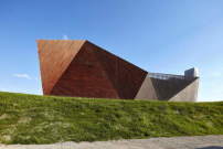 Apropos verdecken: Zur Anordnung der dreieckigen, vorgehängten Lamellenpaneele der Hauptgebäude wurden die Gestalter von der in der Marine erprobten „Razzle Dazzle“-Camouflagetechnik inspiriert. Das Thema Tarnung ist dem Büro vertraut: Mit dem Firmensitz eines Schweizer Finanzinstituts realisierten die Architekten bereits ein Bauwerk, das sich aufgrund einer flimmernden Glasfassade dem Auge des Betrachters entzieht. Das Kraftwerk in Russi soll nun dank wilder, komplexer Musterung in seiner Dimensionierung möglichst uneindeutig – und damit kleiner – erscheinen und so in der Landschaft der Emilia Romagna nicht weiter auffallen. Fast ein wenig schade, denn auch die in seinem Inneren verborgene Technik hat durchaus ihre ästhetischen Reize. (kms)