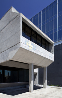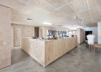 Jahrelang schlummerte dieses architektonische Kleinod unter einer dicken „Vanillesoße-farbenen“ Putzschicht, dann entdeckten Clare Cousins Architects (Melbourne) den Büroblock aus den 70er Jahren im Norden Melbournes, befreiten ihn von der Soße und machten den Bau mit seinem zurückgewonnenen brutalistischen Charme zu ihrem Bürositz.