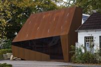 Den Verwandlungsprozess beschreiben die Planer, als wären Schneider am Werk gewesen: Nach der Entfernung späterer Zubauten und der Reinigung des Bestands nahmen sie zunächst exakt Maß, was auch drei große Steinbrocken einschloss, die aus der letzten Eiszeit übriggeblieben sind. Die Maße übertrugen Möhn und Bouman in 3D-Zeichnungen, die dann mit dem Computer zu einem Kleid geschnitten wurden, das sie über das alte Haus stülpten. Als Material wählten sie Corten-Stahl.