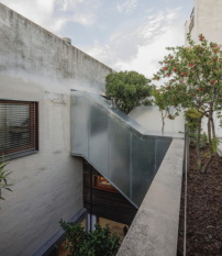 Dem Ensemble, einem Dreiparteienhaus, wurden drei neue Büroflächen von zusammen etwa 250 Quadratmetern Nutzfläche hinzugefügt. Zwei davon liegen im Erdgeschoss, eine im obersten Stockwerk. Diese Volumina wollten die Architekten so miteinander verbinden, dass der Übergang von einem ins andere Volumen unmerklich erfolgt. Durch einen einheitlichen, beheizten Betonfußboden, die durchgängig homogene Materialisierung der Innenräume sowie verbindende Alublechverkleidungen im Außenbereich sollen die Räume als Kontinuum wahrgenommen werden. An der Fassade zeichnet sich ohnehin nur das Volumen im Obergeschoss ab, die beiden anderen Räume sind in den Tiefen des Hinterhofgewirrs vergraben. Das Projekt zielt erklärtermaßen darauf ab, die Parameter der typisch südspanischen Innenstadtsituation in zeitgemäße Formensprache und Raumfolgen zu übersetzen.