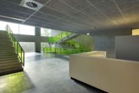 Die Doppelsporthalle, das größte der sechs Gebäude, fasst 300 Zuschauer und steht nicht nur dem Hochschulsport, sondern auch für Veranstaltungen im Viertel zur Verfügung. Das Gebäude ist um ein Geschoss angehoben, um darunter einen Parkplatz für 80 Autos anzubieten. Auf dem Dach befindet sich ein Freiluft-Basketballfeld. Eine monumentale Treppe erlaubt einen Blick über den Campus.