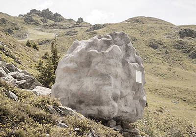 Titelbild: Steinhütte von Bureau A im Skulpturenpark Verbier, Foto von Dylan Perrenoud