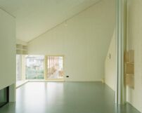 Das flache, vorgesetzte Giebeldach samt Dachboden wurde abgetragen und stattdessen mit einem offenen Raum inklusive Empore aufgestockt. Abbruch und Einbau der Holzelemente erforderten sorgfältige Vorbereitung und einen streng durchgetakteten Zeitplan, da das Haus während der nur einjährigen Planungs- und Bauzeit durchgehend bewohnt wurde. Bodentiefe Fenster eröffnen nun den Blick auf den Garten mit altem Baumbestand und die Gebirgskette „Drei Schwestern“ im nahen österreichischen Rätikon.