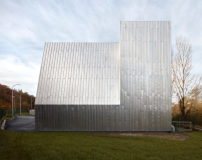 Trotz eines eng gesteckten Spielraumes, was Maße und Lage der einzelnen, hinzugefügten Bauwerke angeht, weist die Kläranlage im asturischen San Claudio eine große Vielfalt ungewöhnlicher Formen, Farben und Materialien auf. Zwei neue Hallengebäude wurden durch die Architekten Francisco José Padilla und Juan Manuel Nicás Caballero errichtet, eines zur Vorbehandlung und eines zur Wiederaufbereitung des Schmutzwassers. Die beiden Volumen orientieren sich jeweils in ihrer Ausrichtung am Bestand, bilden jedoch aufgrund der technischen Anforderungen in sich unterschiedliche Höhen und dadurch abwechslungsreich gezackte Dachkanten aus. Mit einer metallischen, sich einmal um das jeweilige Gebäude legenden Verkleidung reflektieren sie das Tageslicht und die die Anlage umgebende Landschaft aus verschiedenen Winkeln. An den Nord- und Südfassaden verbindet die Verwendung von Polycarbonat den Anspruch an günstiges Baumaterial mit dem Wunsch nach natürlicher Belichtung.