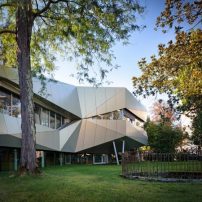 Alles nur Show – dafür eine, die sich sehen lassen kann: Gefaltete Fassaden können dann eine interessante Lösung sein, wenn brav montierte und glatt-glänzende Aluminiumpaneele dem Auftraggeber zu langweilig, eine aufregende Konstruktion aber zu teuer ist. So auch im südwestfranzösischen Bayonne. Hier hat das Pariser Büro Gardera-D Architectures für den Erweiterungsbau der „Agglomeration Côte Basque Adour ACBA“ – einer staatlichen Organisation für politische und wirtschaftliche Entwicklung des lokalen Wohnungsmarktes – eine auffällige Fassade mit Falten entworfen.