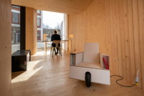 Wenn man wandern geht, in die Berge schaut und klares Quellwasser trinkt, dann schläft man in einer... Blockhütte. Freies Assoziieren zum Thema Blockbauweise ergibt meist sehr rustikale Bilder. Das Projekt Timber Prototype House – entwickelt von den Teams um Achim Menges (Stuttgart) und Hans Drexler (Frankfurt) in Zusammenarbeit mit der IBA Thüringen – bietet seit Kurzem eine völlig andere Perspektive auf den traditionellen Holzbau. Im Rahmen der Forschungsinitiative Zukunft Bau wurde ein experimentelles Holzbausystem entwickelt und im März ein erstes Projekt eröffnet. Innovativ ist dabei die gezielte Verknüpfung von Material und Technik.