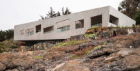 Beim ihrer Villa für einen Maler in der Nähe der zentralchilenischen Fischerstadt Los Vilos reagieren Felipe Assadi Arquitectos (Santiago de Chile) sensibel auf die besonders scharfkantige Topographie dieses felsigen Küstenabschnitts und generieren dadurch genau die bereits erwähnten Qualitäten. Die Architekten fügen dem benachbarten, ebenfalls von ihnen gebauten Atelier ein schmales aber imposantes Volumen hinzu, welches in der gleichen Materialität – Sichtbeton und viel Glas – ausgeführt ist.