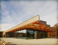 Hervorgegangen aus einem Wettbewerb im Jahr 2010, ist die im September fertig gestellte Festhalle von den Architekten Ackermann + Raff (Stuttgart) entworfen worden. Sie bildet den Abschluss einer den Landschaftraum prägenden Allee.