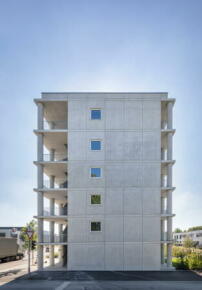 In Bayern hat der sozial engagierte Wohnungsbau seit vielen Jahren Tradition. Das Mehrfamilienhaus von Fink + Jocher in Neu-Ulm ist das jüngste Beispiel des vom Staatsministeriums für Wohnen, Bau und Verkehr geförderten Modellvorhabens Experimenteller Wohnungsbau. Es erfüllt nicht nur die ministeriellen Forderungen nach Wirtschaftlichkeit und Zukunftsfähigkeit, sondern überzeugt auch in seiner strengen Sichtbetonästhetik.
