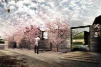 Wird die neue Küche von außen eher ein recht schlichter Kasten werden, so fällt innen seine besondere weiße Deckenwölbung auf, die sich über den Küchenraum spannen wird. Auf Weiß legten Snøhetta, die gemeinsam mit dem Büro envelope Architecture+Design und dem Küchendesigner Harrison Koellner die Innenarchitektur des French Laundry realisieren, besonderen Wert. Böden, Arbeitsplatten und Regalstrukturen sind alle aus weißem Dekton angefertigt, ein edles, beständiges Steinimitat. Etwas weniger edel sind da die Schiffscontainer, mit denen Thomas Keller jetzt noch vorliebnehmen muss. Denn solange Snøhetta, envelope A+D und Harrison Koellner bauen, wird in Metallboxen Sterneküche betrieben. (sj)