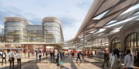 Interchange“ heißt das Projekt, Mixed-Use ist seine Formel. Dieser verglaste und kurvige Komplex soll Busbahnhof, Büro-, Geschäfts- und Wohngebäude werden. Auf Straßenebene ist die zukünftige Busstation. Foster markiert sie über pavillonartige, weit vorkragende Glasdächer. Sie umschließen einen öffentlichen Platz, der als Grand Plaza den städtebaulichen Mittelpunkt in Fosters Masterplan fürs Westgate bilden soll.