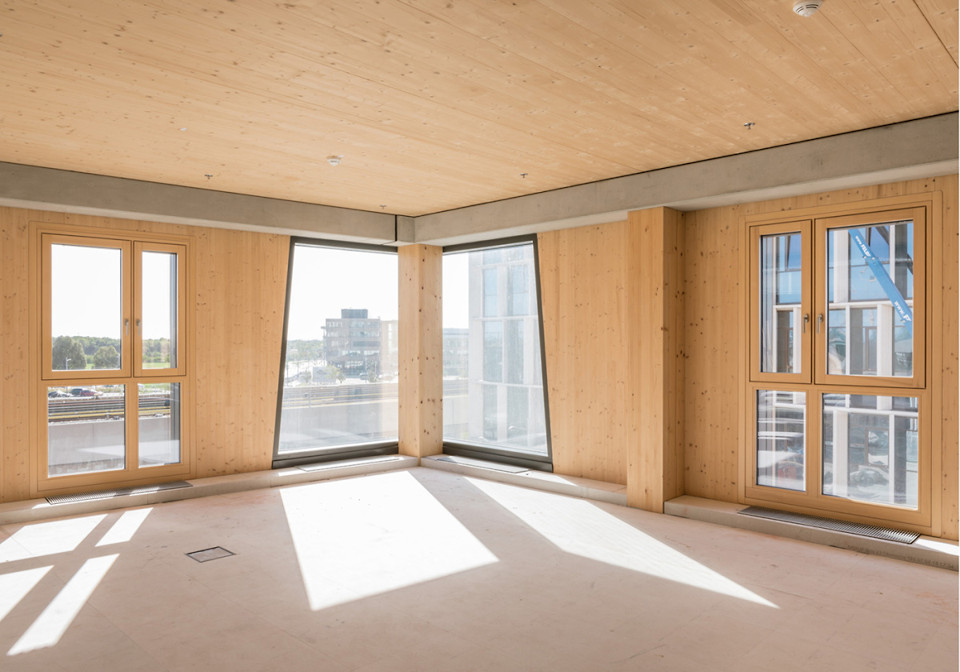 Ebenfalls Teil des IBA-Programms war die Seestadt Aspern. Das Gebiet im Nordosten der Stadt befindet sich noch in Entwicklung und soll künftig Wohnraum für 25.000 Menschen bieten. Als eines der größten Stadtentwicklungsprojekte Österreichs gibt es hier auch Platz für Experimente im Holzbau, unter anderem entworfen von Rüdiger Lainer + Partner, RLP.