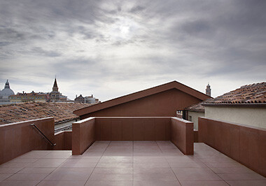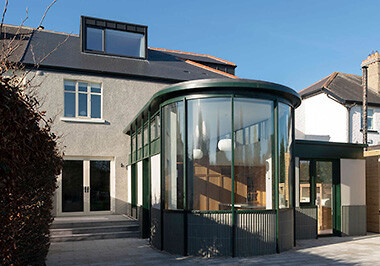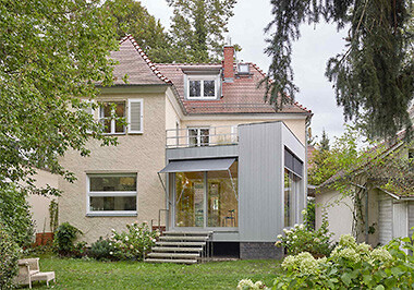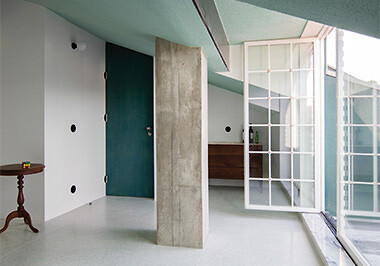 Deutliche Achtzigerjahre-Vibes versprüht der Einsatz von Terrazzo in Kontrast mit anderen prägnanten Materialien, etwa bei dem Wohnhaus von Meier Unger in Berlin oder den Um- und Neubauten von fala atelier, die ohnehin gerne postmoderne Bezüge in ihren Projekten anklingen lassen. Der schwimmende Pavillon in Almere von Studio Ossidiana ist zudem eine Hommage an die Farbe Rosa. Etwas zurückhaltender gehen Scullion Architects in Dublin oder Florian Voigt in Leipzig vor, die in ihren Anbauten Terrazzo mit großflächigen Holzeinbauten kombinieren. (sla)