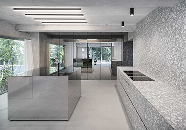 Bei Architekturbüros ist das Material aufgrund seiner Robustheit und der individuellen Gestaltungsmöglichkeiten ebenfalls äußerst beliebt. Dass es sich dabei nicht nur um eine modische Erscheinung handelt, zeigen die folgenden fünfzehn Projekte aus dem Baunetz-Archiv. Die Beispiele reichen von der Aufbereitung des im Bestand häufig unter neueren Zeitschichten verborgenen Materials – etwa bei der Sanierung einer ehemaligen Villa in Berlin von Christof Schubert Architekten oder im Bayrischen Kunstgewerbeverein, saniert von Oliv Architekten – bis zur entwurfsprägenden Nutzung, beispielsweise beim Umbau einer Konzerthalle in Antwerpen von Atelier Kempe Thill. Bei der Sanierung der Procuratie Vecchie am Markusplatz von David Chipperfield Architects wäre es gar ein Affront gewesen, auf Terrazzo zu verzichten.